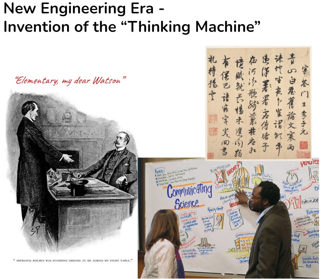 ความฉลาดของมนุษย์ทำให้เราคิดค้น “ภาษา” ทำให้ “ความรู้” ถูกถ่ายทอดผ่านภาษา รวมทั้งยังถูกสะสมจากการเขียนบันทึก ซึ่งทำให้เกิด “การเรียนรู้” ประสิทธิภาพสูงต่างจากสัตว์ประเภทอื่น ทำให้ “ความฉลาด” สามารถพัฒนาได้อย่างต่อเนื่องทำให้ มนุษย์สามารถแก้ปริศนาที่ซับซ้อนมากอย่างเหลือเชื่อได้ (รูปที่ 3)