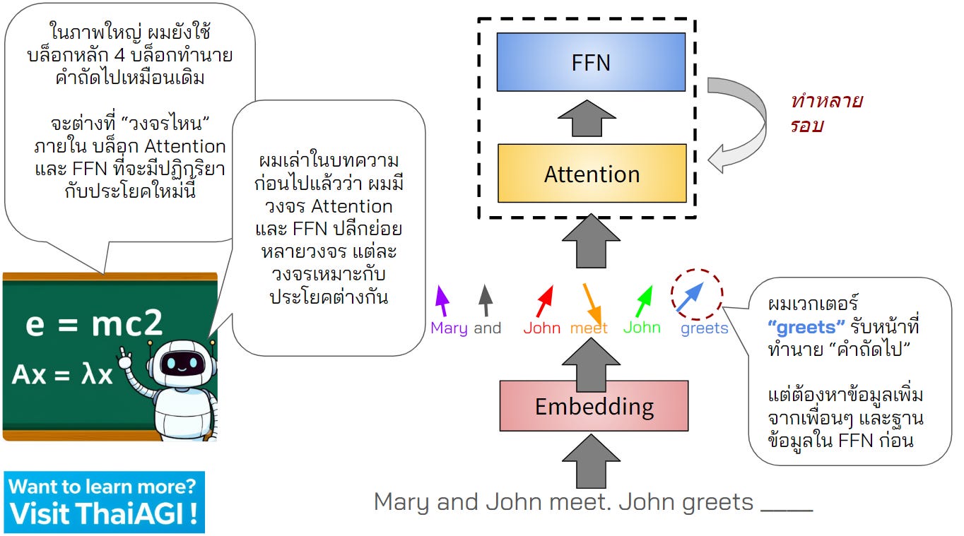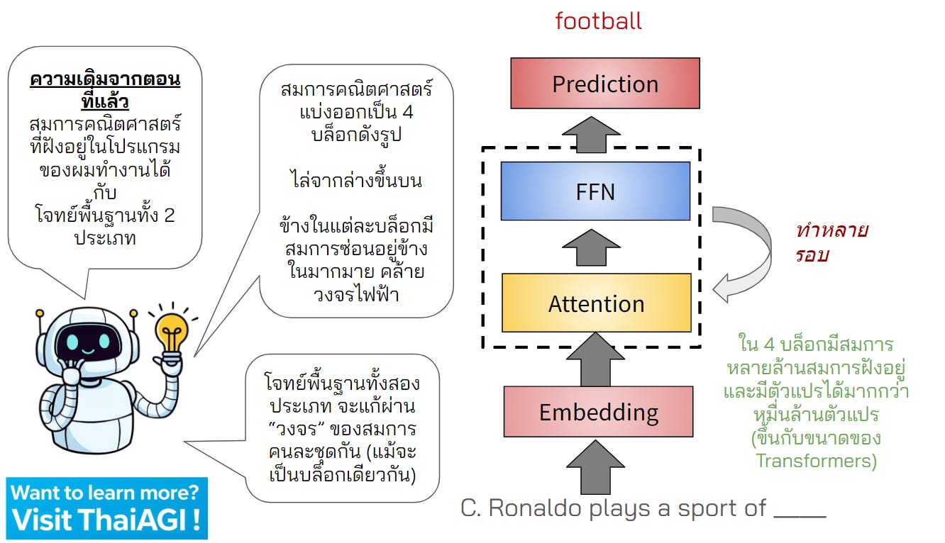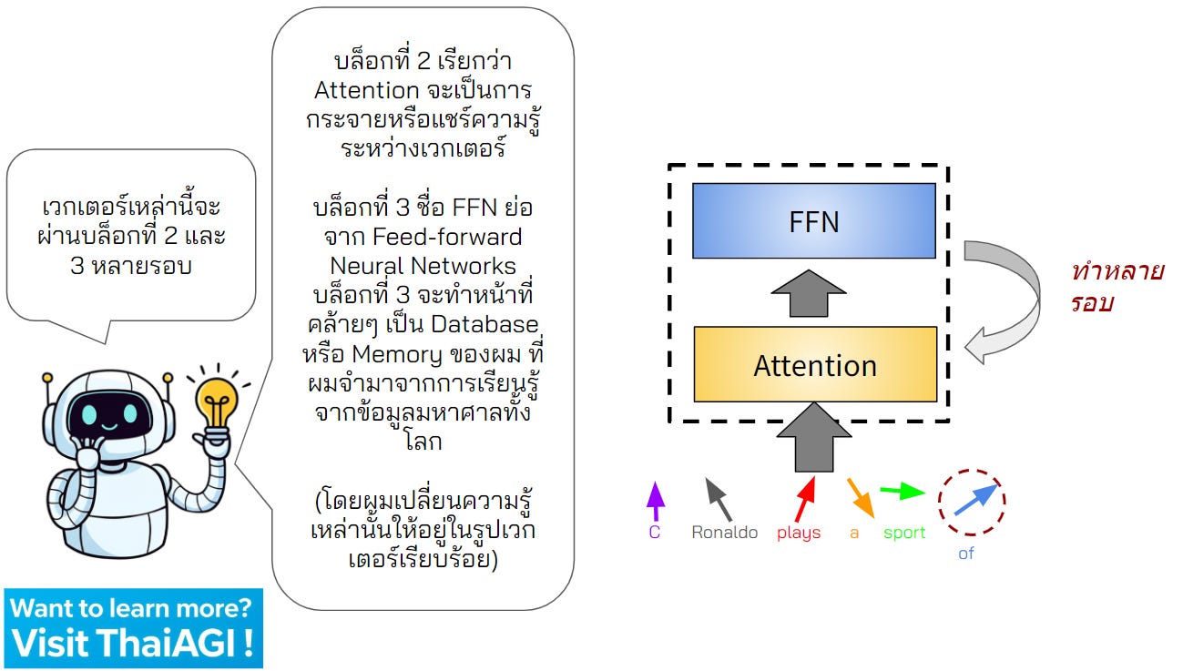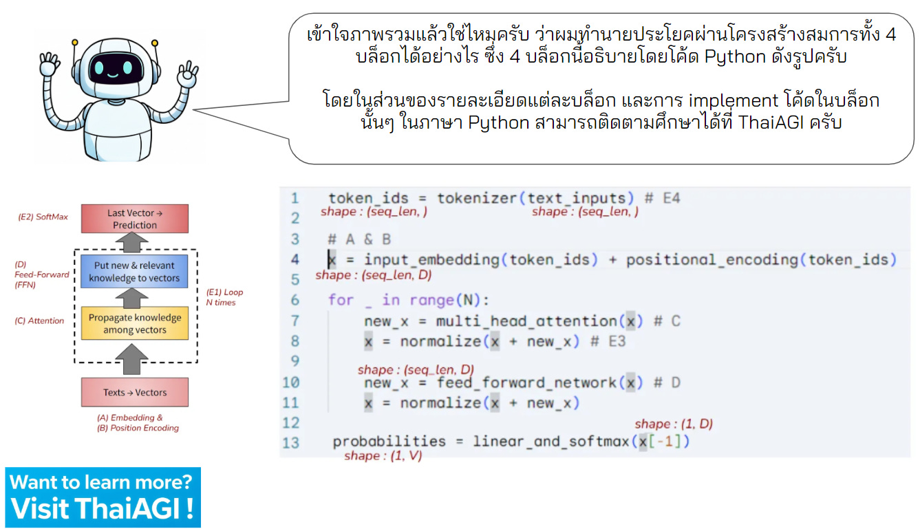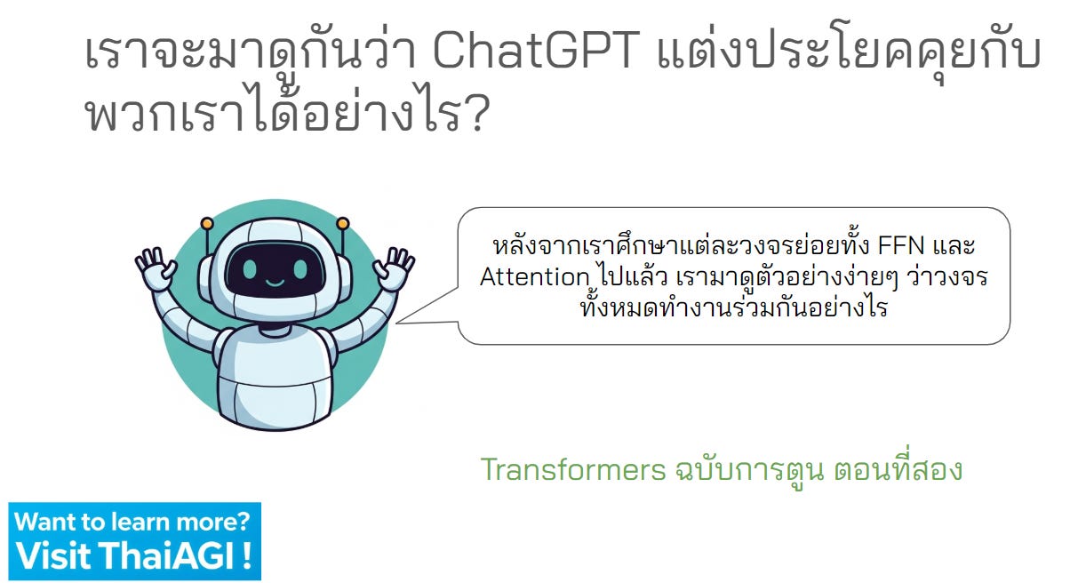 เราจะนำเสนอในฉบับการ์ตูนต่อจากตอนที่แล้ว เพื่อให้เข้าใจภาพรวมนี้ง่ายที่สุดกันครับ และเราจะค่อยๆ ทยอยเพิ่มเวอร์ชันละเอียดพร้อมโค้ดของ Transformers เร็วๆ นี้ครับ