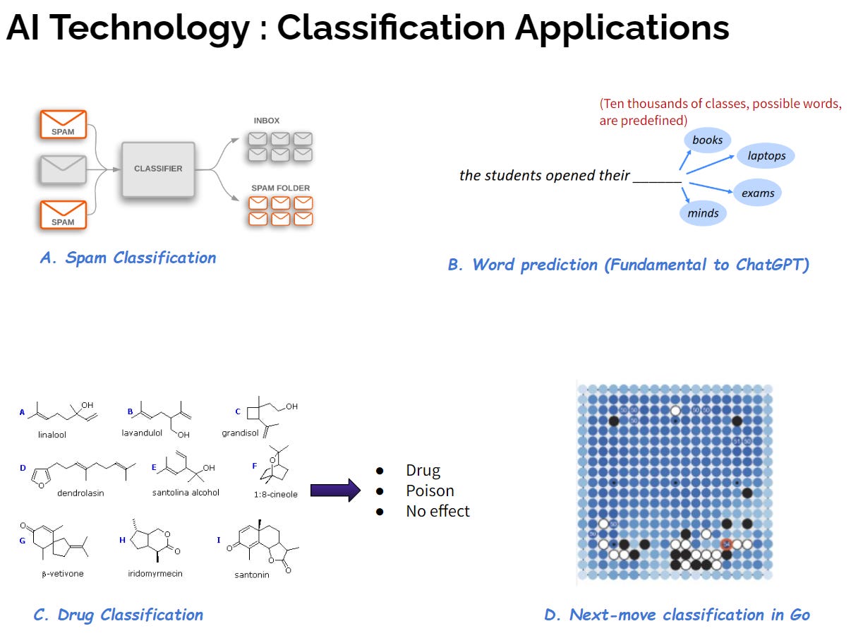 คำตอบคือ งาน AI ที่ดูซับซ้อนเหล่านี้ แท้จริงแล้วสามารถมองให้อยู่ในรูป classification ได้ดังแสดงในรูปที่ 4 ครับ