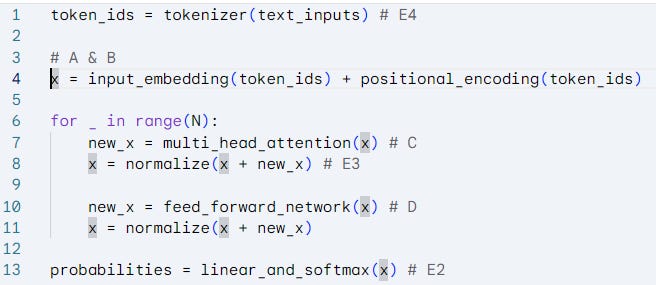 ซึ่ง Transformers ออกแบบกระบวนการ (I) และ (II) นี้ โดยการแบ่งออกเป็นหลายโมดูลย่อย หรือเป็นบล็อก (block) ดั่งแสดงในรูปที่ 11 (บน: diagram, ล่าง: pseudo-code) โดยแต่ละบล็อกจะแก้ปัญหาทีละขั้นแล้วส่งต่อไปยังบล็อกถัดไป